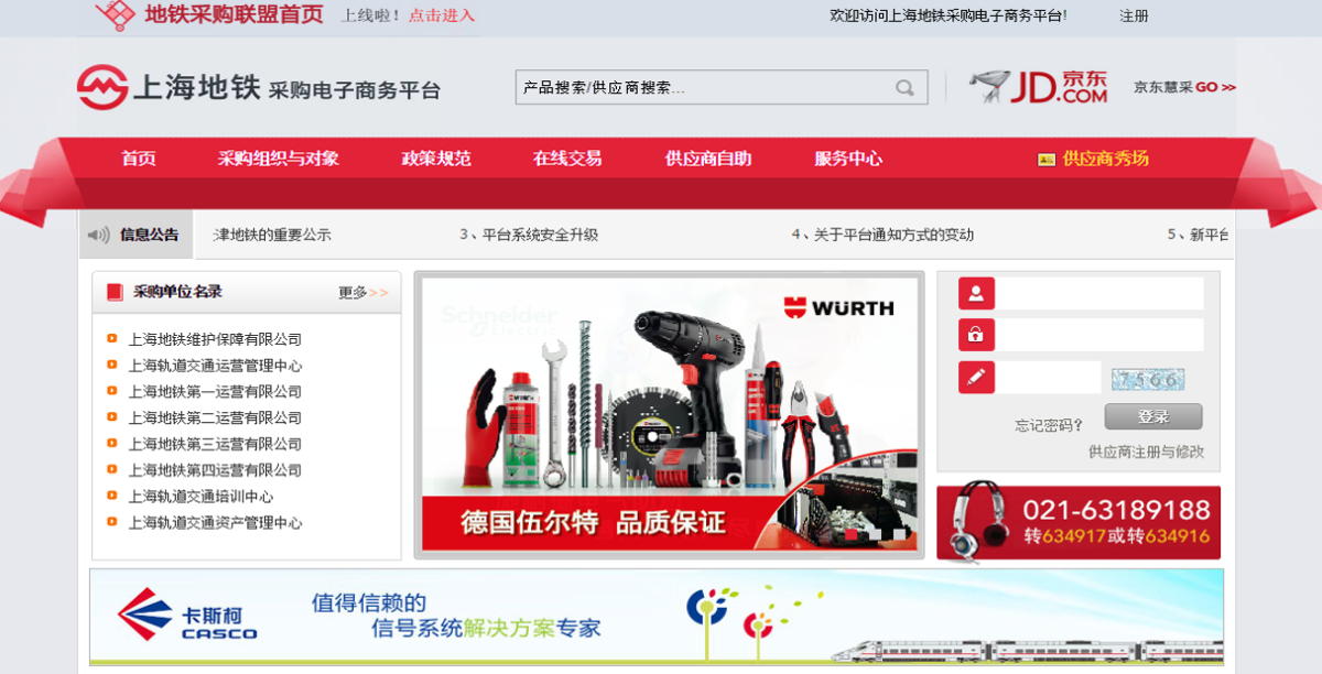 Würth has formal access to MSCP - Shanghai Metro E-procurement Platform from Nov 7th, displaying as brand supplier on the homepage of Metro Procurement Union Shanghai Railway Station.